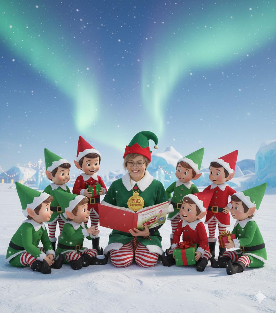 Elfonomics is where her academic work meets storytelling, imagination, and Christmas magic.